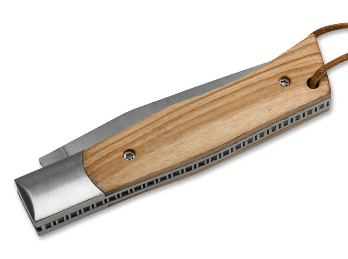 The Magnum Parzival Combines The Traditional Shape And Construction Of A L’Alpin Pocket Knife With Modern Materials And Details. The Stainless 7Cr17Mov Slipjoint Blade Is Classically Opened By Nail Nick And Does Not Lock. The Back Spring Is Equipped With An Elaborate Decorative Filework, Which Also Acts As A Support For The Thumb And Thus Increases The Work Safety. The Noble Handle Scales Are Made Of Olive Wood, The Characteristic Bolsters Are Made Of Stainless Steel. A Lanyard Hole With A Short Leather Strap Completes The Equipment Of The Magnum Parzival.