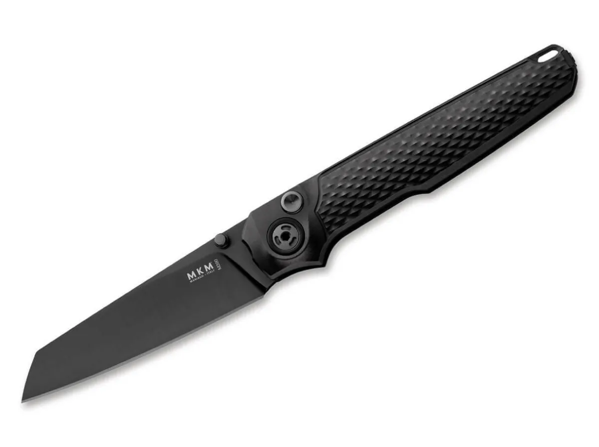 Kraftstrotzend Und Voller Temperament: Das Mkm Miura Scharrt Bereits Wie Ein Kampfeslustiger Stier Mit Den Hufen. Dank Seiner Klinge Aus M390 Nimmt Das Elegante Taschenmesser Jegliche Schneidarbeiten Spielend Auf Die Horner. Dabei Offnet Der Daumenpin Das Messer Geschmeidig Und Lediglich Der Button Lock Kann Die Schwarze Sheepfoot Klinge Bandigen. Geradezu Sanftmutig Zeigt Sich Der Schwarze Griff Aus Texturiertem Titan, Der Uber Eine Fangriemenose Sowie Einen Umsetzbaren Tip-Up Clip Aus Titan Verfugt.