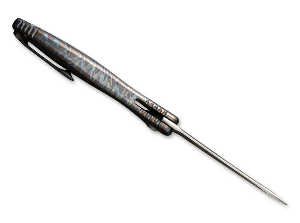 The Synergy 2 Titan Flame Tanto From We Knife Is The New Edition Of The Synergy, Which Won An Award At The Blade Show In 1999. For Its 20Th Birthday, This Revised Version Was Created In Cooperation With The Well-Known Designer Jim O’Young. The Ball-Bearing Tanto Blade Is Made Of Powder-Metallurgical Bohler M390 And Opens By Flipper. The Handle Is Made Of Elegant Titanium With A Flame Look. The Blade Bearing Cover, The Clip And The Screws Are Also Made Of Titanium. With A Clip (Tip-Up / R) And A Lanyard Hole.