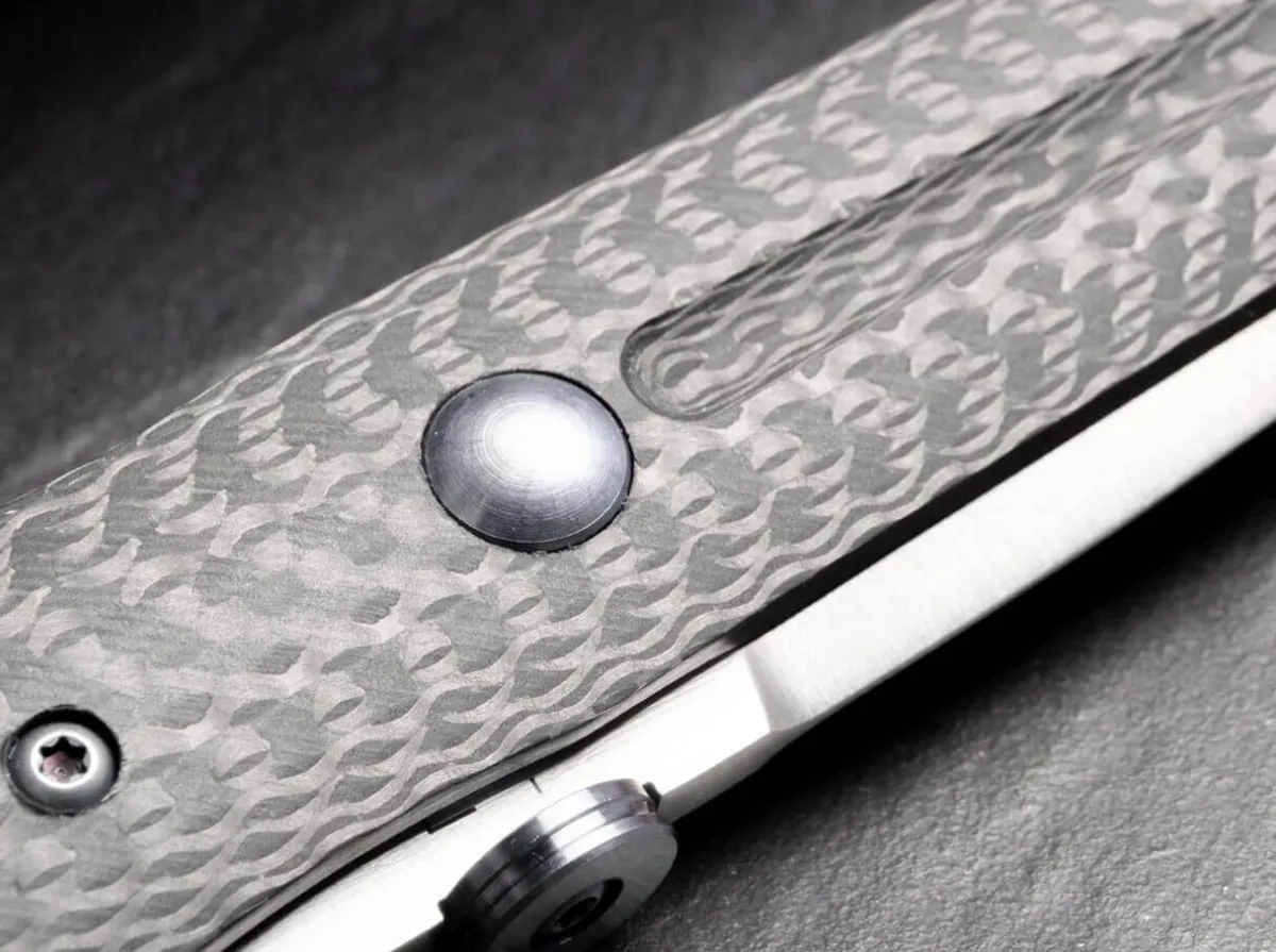 The Blade Is Provided With An Elaborate Two-Tone Finish, Is Opened By A Thumb Stud And Is Reliably Locked In Place By A Sturdy Linerlock. The Handle Scales And The Spacer Are Made Of Modern Carbon Fibre, While The Single Liner Is Made Of Stainless Steel. Liner, Screws And The Removable Titanium Thumb Disc Are Anodised In Ice Blue And Thus Perfectly Match The Colour Of The Machined Titanium Clip (Tip-Up/R) And The Ball In The Front Handle Scales, Which Is Also Made Of Titanium. Ergonomic Thumb Recesses On Both Sides Of The Handle Increase Working Safety. Supplied With A High-Quality Nylon Case For Storage.