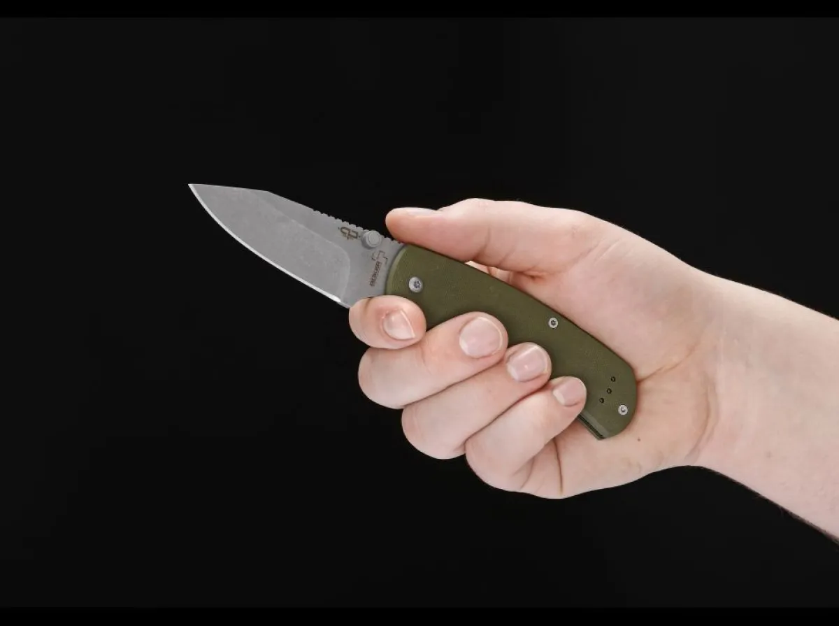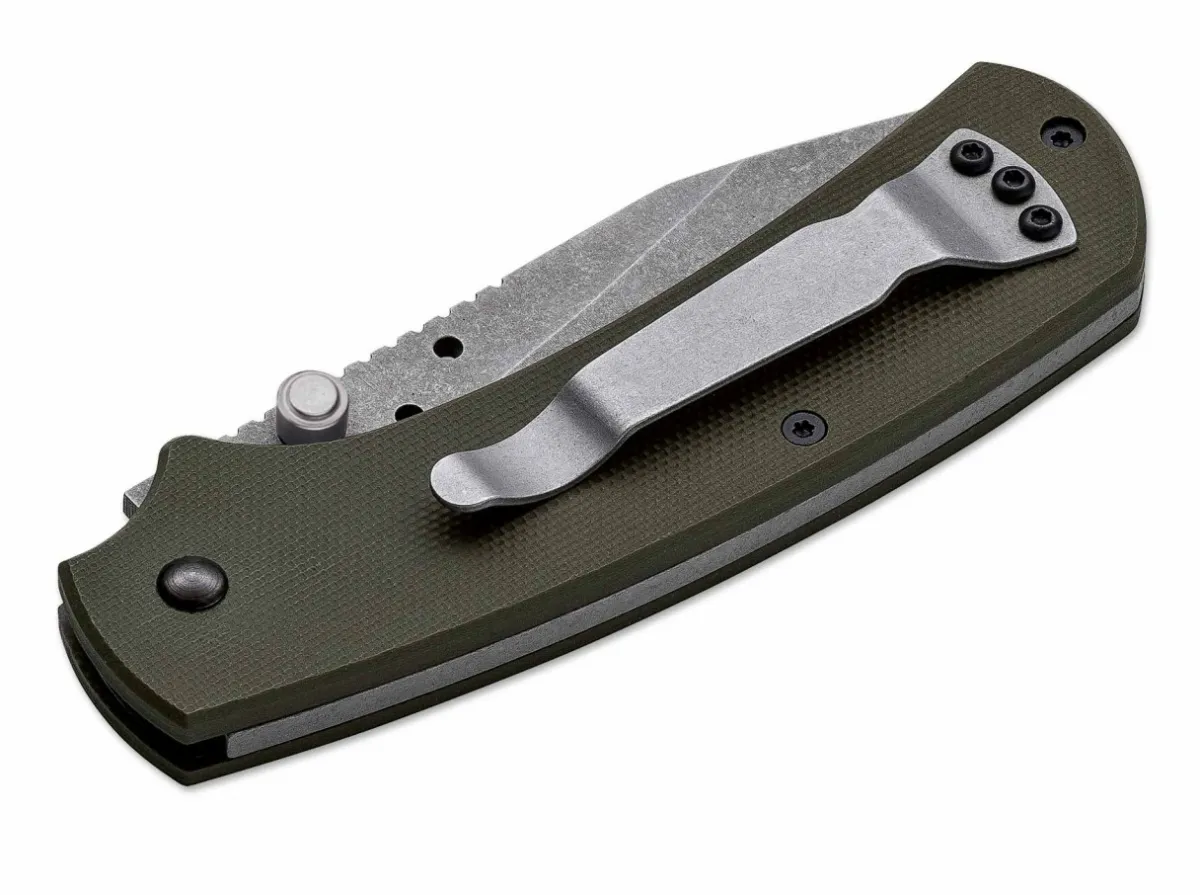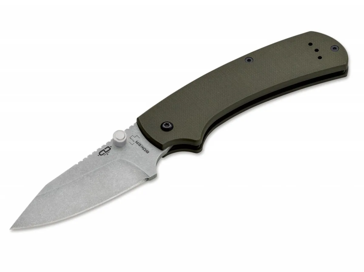 The Boker Plus Xs Od Scores With A One-Handed Operation, A Slipjoint Mechanism, Olive-Colored G10 Scales On Both Sides And A Reversible Clip (L/R). The Unusually Strong Spring For A Slipjoint Provides A High Degree Of Handling Safety Even Without A Lock. The 440C Blade With Stonewash Finish Has A Generously Riffled Thumb Ramp, And Together With The Textured Handle Scales Provides Plenty Of Control For Any Cutting Chore. The Deep Index Finger Groove Not Only Gives Additional Support, But Also Offers The Option To Choke Up On The Knife Or To Hold It Regularly, Providing An Even Greater Range Of Uses. An Ideal Companion, Anytime – Anywhere.