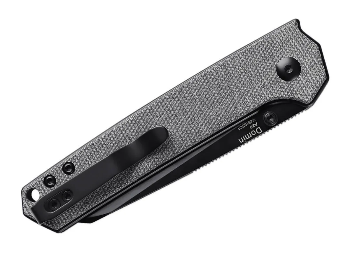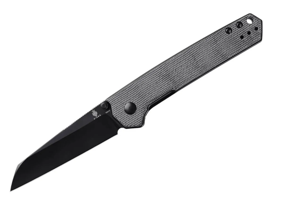 The Kizer Domin Is A Practical, Simple Edc With Textured Black Micarta Handle Scales And A 154Cm Ball Bearing Blade. It Opens With A Thumb Stud And Locks With A Liner Lock. With Lanyard Loop And Convertible Clip (Tip-Up/L-R).