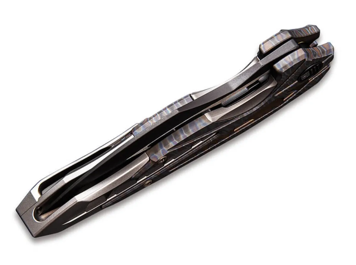 The Spectacular Arrakis By Elijah Isham Is More Proof That The Concept Of The Folder Can Be Defined Anew. The Full Flame-Anodized Titanium Handle Has Many Cutouts, Which Make The Arrakis Lightweight And Easy To Carry. The Blade On A Ball Bearing Pivot Is Made From Powder-Metallurgical Bohler M390, Has A Black Stonewash Finish And Opens With A Flipper. The Solid-Milled Clip (Tip-Up/R), Screws, Integrated Back Spacer And Pivot Cap Are Also Titanium.