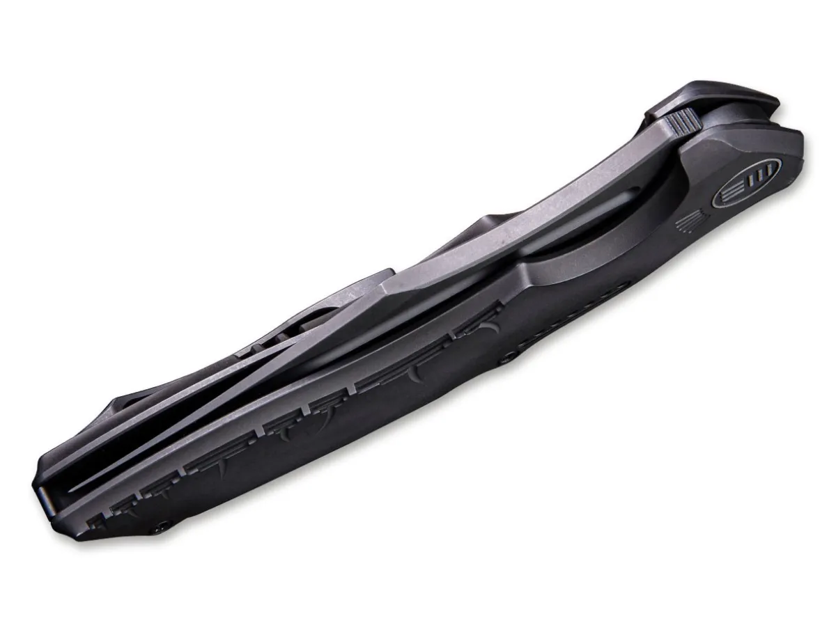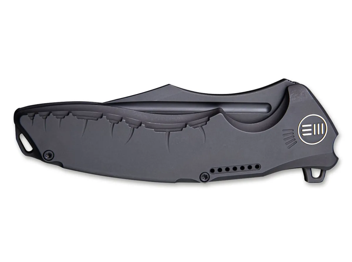 The Chimera By We Knife Combines Custom Quality With An Absolutely Unique Appearance. The Elaborately Decorated Titanium Handle Gives The Knife A Heroic Touch. The Clip Point Cpm-S-35Vn Blade Has A Black Stonewash Finish. The Blade Virtually Flows Out Of The Handle, Highlighting The Chimera’S Unique Style. An Elaborately Crafted Titanium Back Spacer And A Sturdy Clip (Tip-Up) Round Out The Impressive Design.