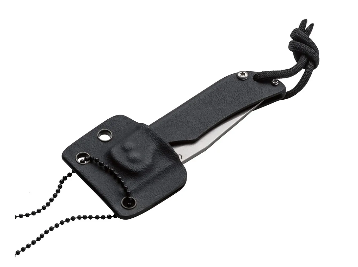 This Minimalistic Friction Folder Can Perform All Everyday Work. The Hollow-Ground 440C Steel Blade Is Without Spring Or Lock. Typical For The Friction Folder Is The Extended Blade Spine By Which The Thumb Keeps The Blade Open During Use. The Minimalistic Handle Is The Ultimately Light In Construction. With Lanyard Hole. In Order To Prevent Accidental Opening, The Knife Sits In Its Kydex Sheath Which Is Included In The Delivery And Can Be Comfortably Carried As A Neck Knife On A Bead Chain. With Silver Stonewash Finish And Handle Made From Folded Kydex.