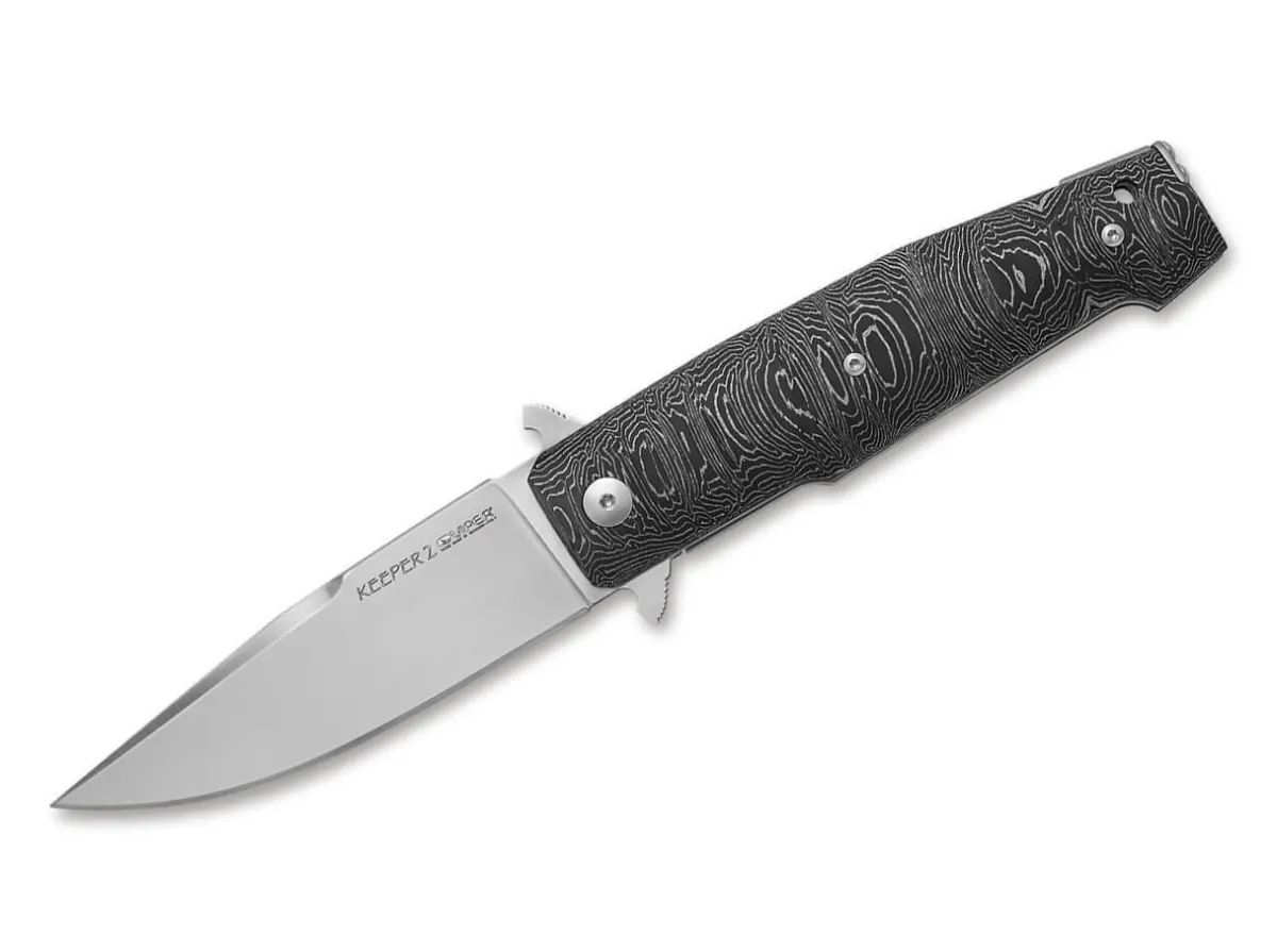 The Viper Keeper 2 Combines Classic Elements Of An Italian Stiletto With The Advantages Of Modern Pocket Knives. The Double-Sided Flipper Opens The Elmax Blade Silky Smooth And Provides Additional Safety As Hand Protection. The Liner Lock Based A.S.L.S. Mechanism (Automatic Safe Lock System) Acts As A Lock And Ensures Safe Working. The Step-Like Handle Is Made Of A Stainless Steel Carbon Fiber Mix In Damask Look And Always Fits Perfectly In The Hand. With Lanyard Loop And Tip-Up Clip (R).