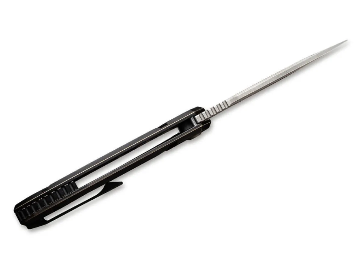 The Straightforward We Knife Minax Titan Bronze Argues With Its Robust Blade Made Of Powder Metallurgy Cpm-20Cv And The Elegant Titanium Handle. The Knife Opens With A Thumb Hole And Locks Securely With A Frame Lock. With A Clip (Tip-Up/R).