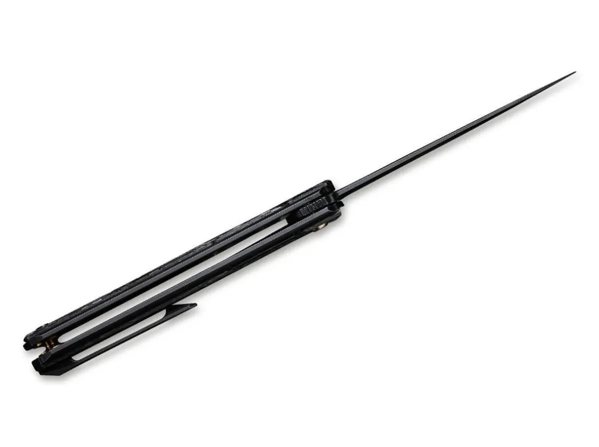 Die Geradlinigkeit, Mit Der Ostap Hel Seine Messer Entwirft, Findet Im We Knife Peer Ihre Perfekte Umsetzung. Der Schlanke Folder Bekennt Sich Zu Seinen Markanten Zugen Und Bildet Optisch Einen Guss Aus Der Pulvermetallurgischen Cpm-20Cv Klinge Und Dem Mit Kohlefaserschalen Besetztem Titangriff In Edlem Schwarz. Flipper Und Linerlock Fugen Sich Formschon In Die Linienfuhrung Des Messers Und Werden Durch Den Kantigen Clip (Tip-Up/R) Formschon Untermalt.
