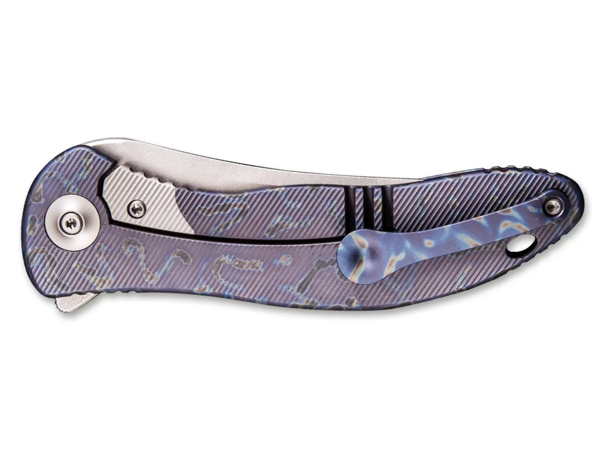 The Synergy 2 By We Knife Is A New Version Of The Synergy, Which Won An Award At The 1999 Blade Show. For The 20Th Anniversary, This Reworked Version Was Created In Cooperation With The Renowned Designer Jim O’Young. The Tanto Blade On Ball Bearings Is Made From Powder-Metallurgical Bohler M390 And Opens With A Flipper. The Handle Consists Of Blue Anodized Titanium. The Pivot Cap, Clip And Screws Also Consist Of Titanium. Comes With A Nylon Case And Polishing Cloth.