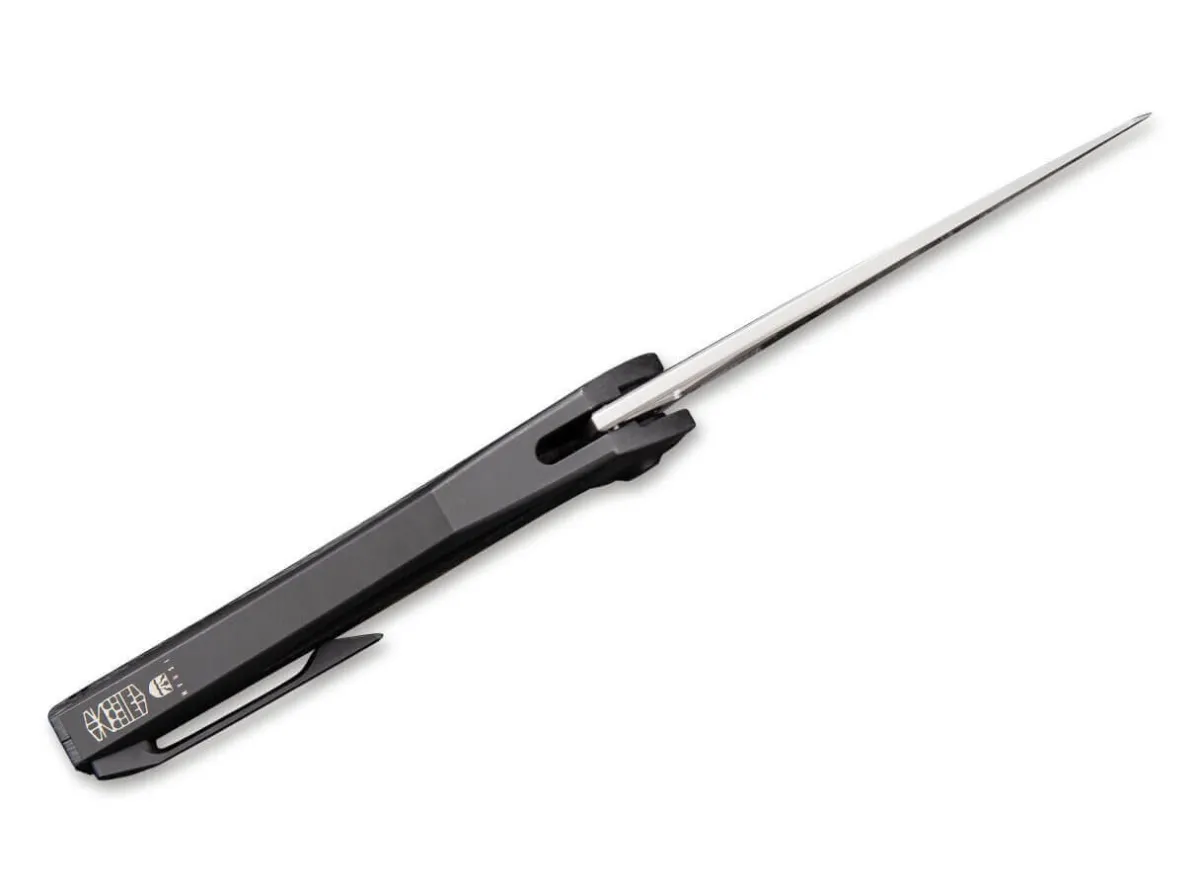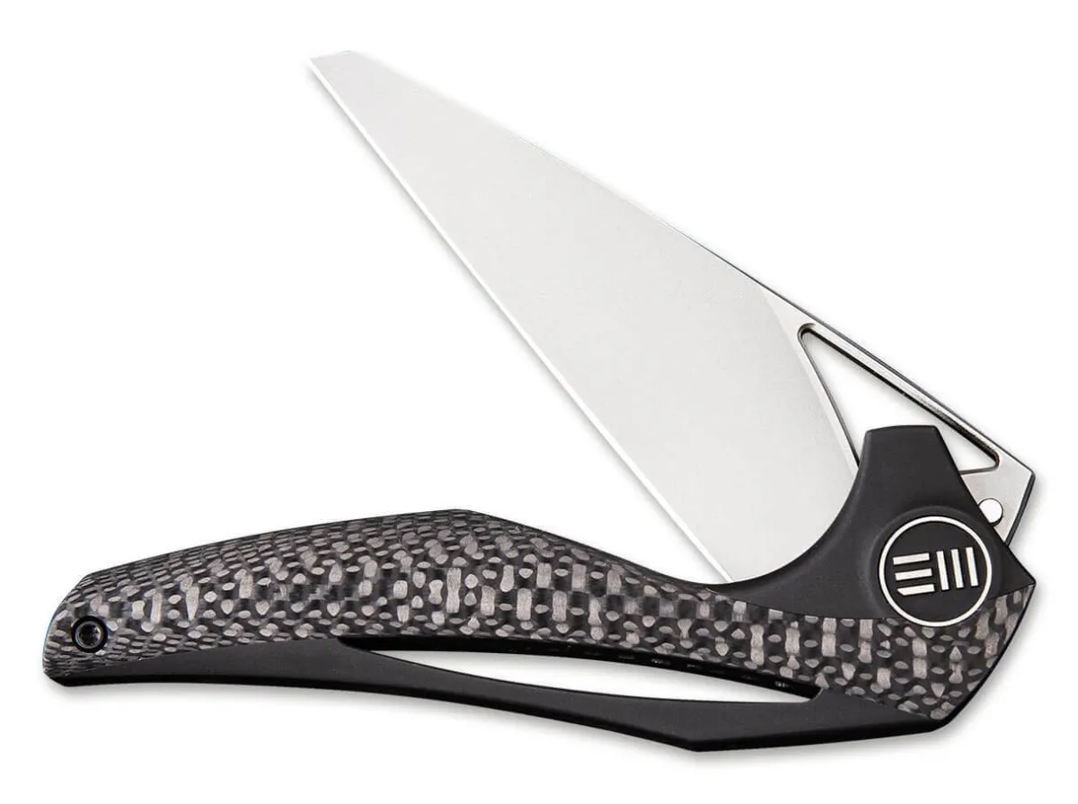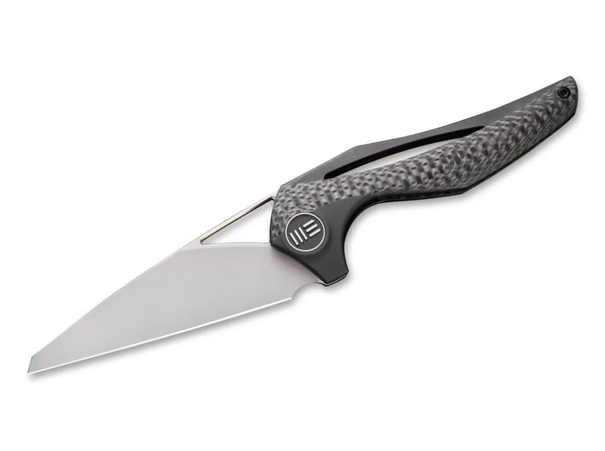 The We Knife Aeterna Black Is An Elegant Pocket Knife Designed By Famous Knifemaker And Designer Elijah Isham. His Designs Are Often Characterized By Organic Shapes And Wavy Lines And This Holds True For This Knife. The Handle Made From One Piece Of Titanium Is Paired With Carbon Fiber Handle Scales. Both These High-Quality Materials Blend Beautifully, Creating An Interesting Visual Effect. The Aeterna Opens Easily With The Help Of The Generous Thumb Opening. When Open, The Blade Is Held In Place By A Framelock. The High-Quality Wharncliffe Blade Is Made From M390 And Is Designed To Last Forever. A Subtle Pocket Clip (Tip/Up) Completes The Picture.