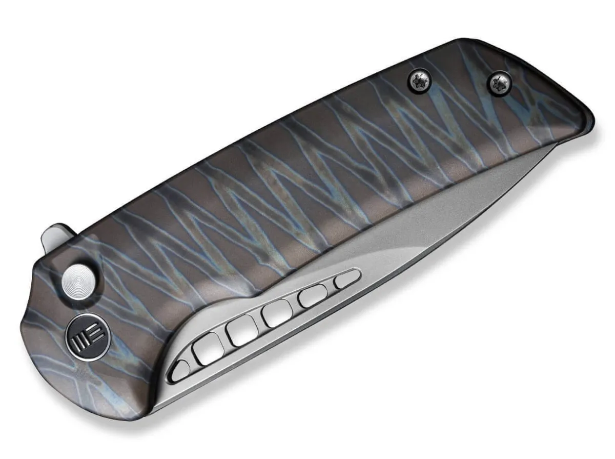 The Small Variant Of The Popular We Knife Malice Stands Out Especially Because Of The Distinctive Openings In The Drop Point Blade Made Of Powder Metallurgy Cpm-20Cv. Thanks To The Ceramic Ball Bearings, The Knife Opens Silky Smooth With The Help Of The Flipper And Is Reliably Secured By The Button Lock. The Dazzling Handle In The Pattern Tiger Stripes And The Tip-Up (R) Clip Are Made Of High-Strength Titanium And Ensure Perfect Handling During And After Use Of The Knife.